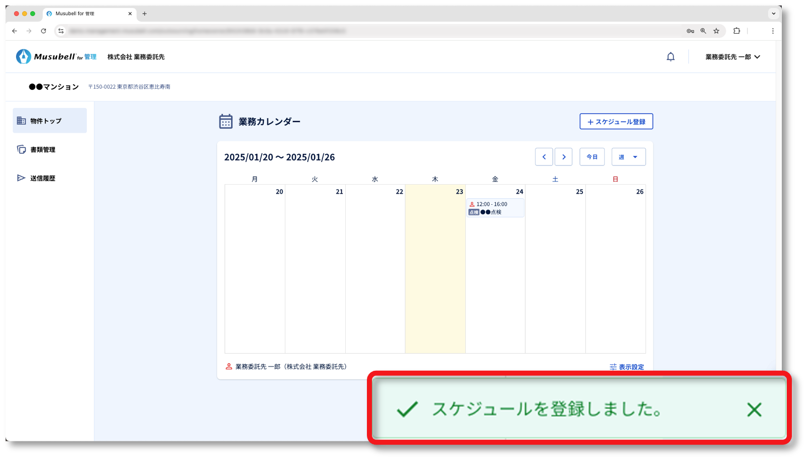 ④右下に「スケジュールを登録しました」とメッセージが表示されたら、登録完了です。