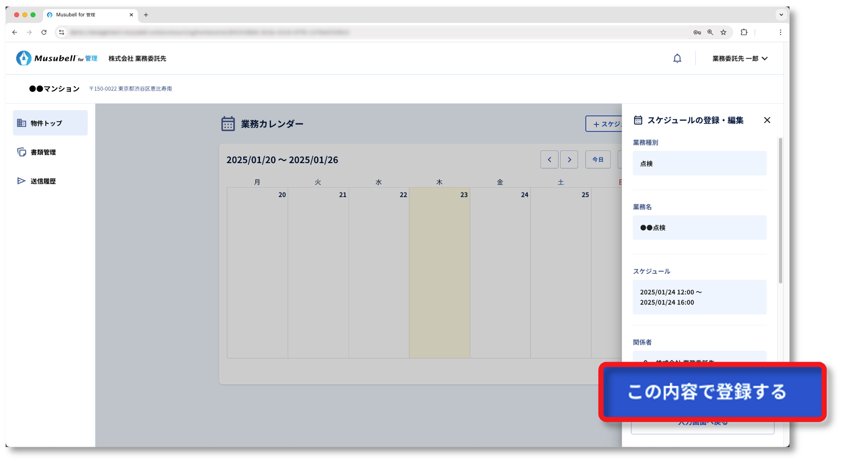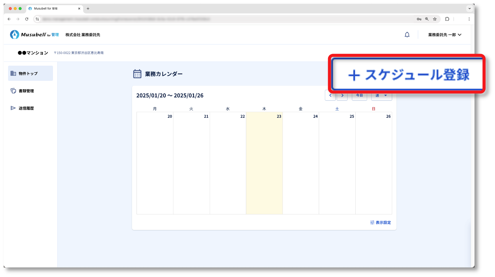 ①「物件トップ」メニューの[スケジュール登録]を押します。