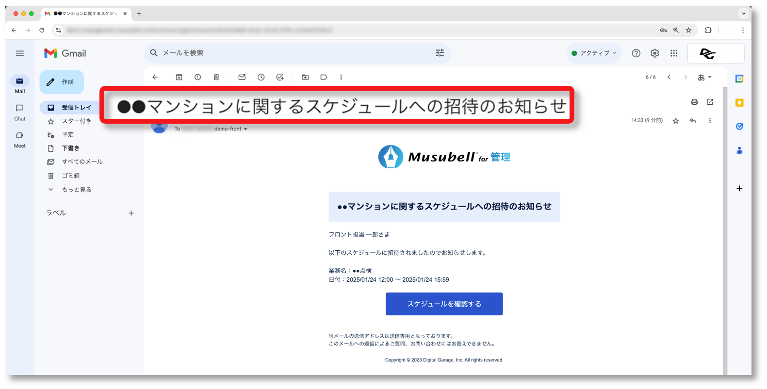 ※スケジュールの関係者には、自動で招待メールが送信されます。